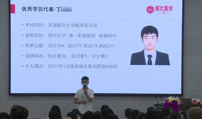 邀请了两位上岸学长现场为大家分享上岸经验!丁同学-集训学员,双非院校,讲述了在研大集训营的春夏秋冬,分享了TF-男孩的由来,分享了研大集训营对顺利上岸的帮助,为大家带来了欢乐,也为大家带来感动!王同学-远程网课学员,某211医学院排名靠后,一志愿上岸北大医学部外科学,学长分享了研大网课对于自己西医考研的帮助!